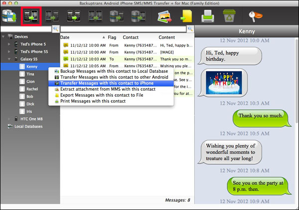 How easy and fast! With Backuptrans Android iPhone SMS/MMS Transfer + for Mac, you can even backup, restore, export and print SMS, MMS Messages for your Android/iPhone smoothly on Mac. Free download the software on your Mac to try now.