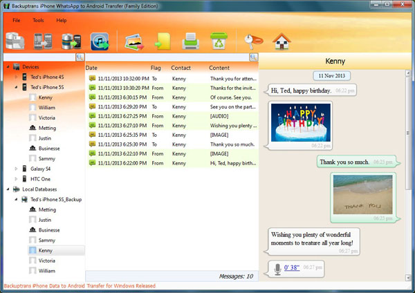 Transferred successfully. All your iPhone Whatsapp chat messages in your iTunes backup have been transferred and merged perfectly on your Android Phone. Free download the software from your computer to try now.