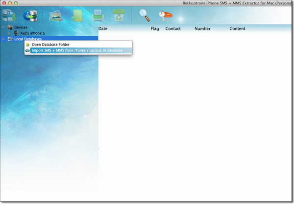 Tip: Or you can right click the Local Database list icon and then choose "Import SMS + MMS from iTunes Backup to Database".