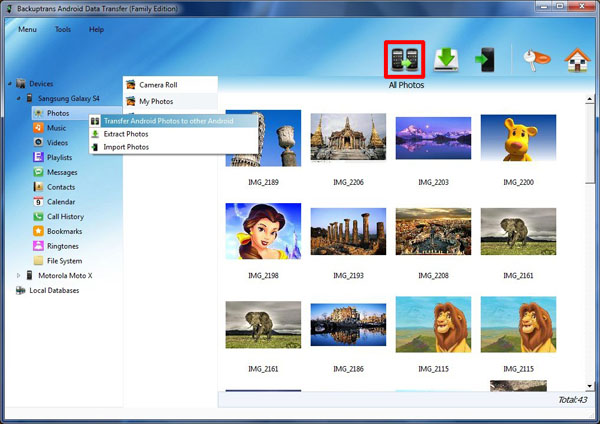 Get a new Android phone and want to transfer data from one Android to another? Backuptrans Android Data Transfer must be a good choice to help you transfer data between Android Phone on computer with ease. You just need to connect your Android Phones to computer via USB or Wifi and then click the "Transfer" button. All data such as Music, Movie, Photo, Playlist, Camera Roll, Message(SMS & MMS), Contact, Calendar, Call history, Bookmark will be merged perfectly on your new Android Phone.