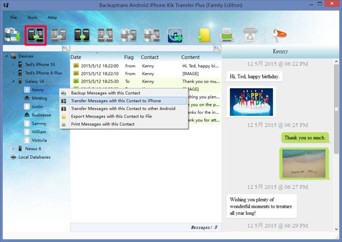 Tip: Or you can right click the contact name and then choose "Transfer Messages with this Contact to Android".